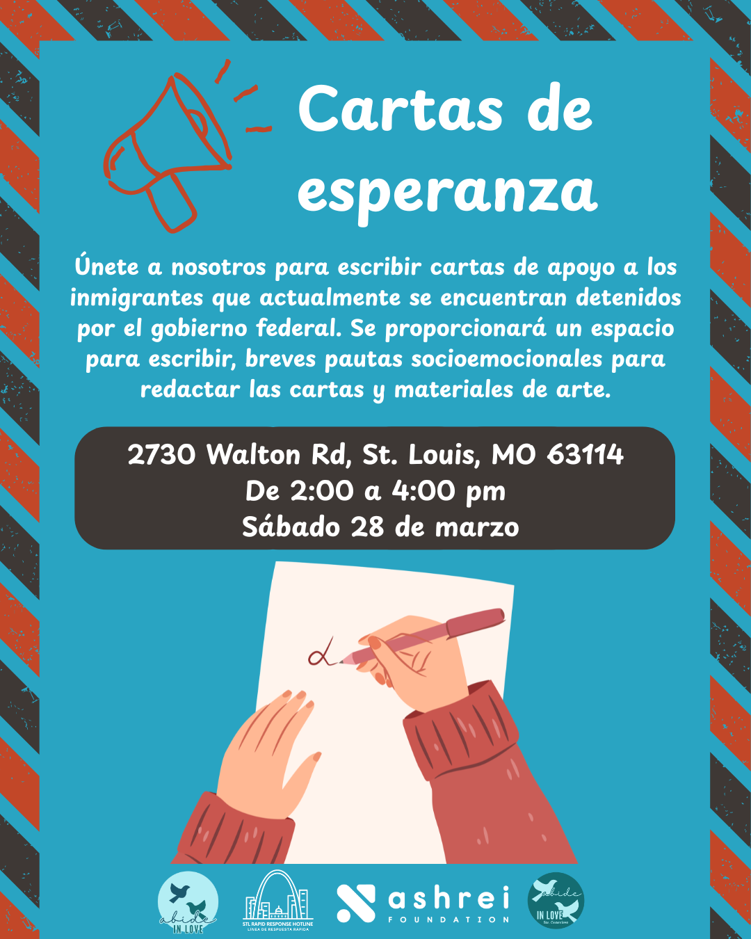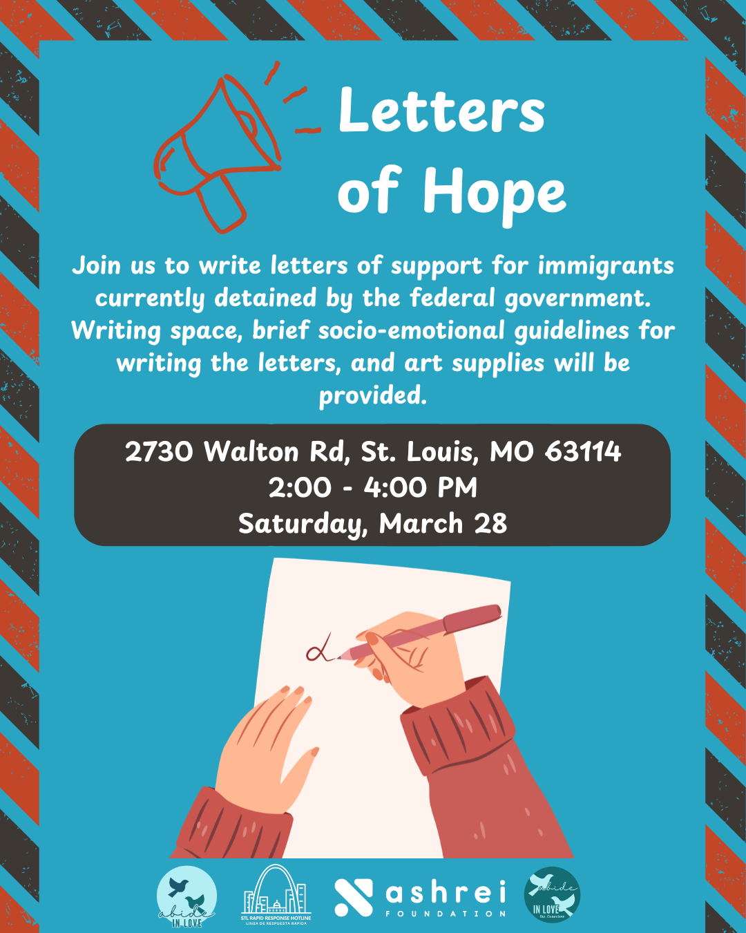 Letters of Hope Saturday, March 28, 2026 2:00 AM 4:00 PM Harmony Church St. Louis 2730 Walton Road St. Louis, MO, 63114 United States (map) Google Calendar ICS