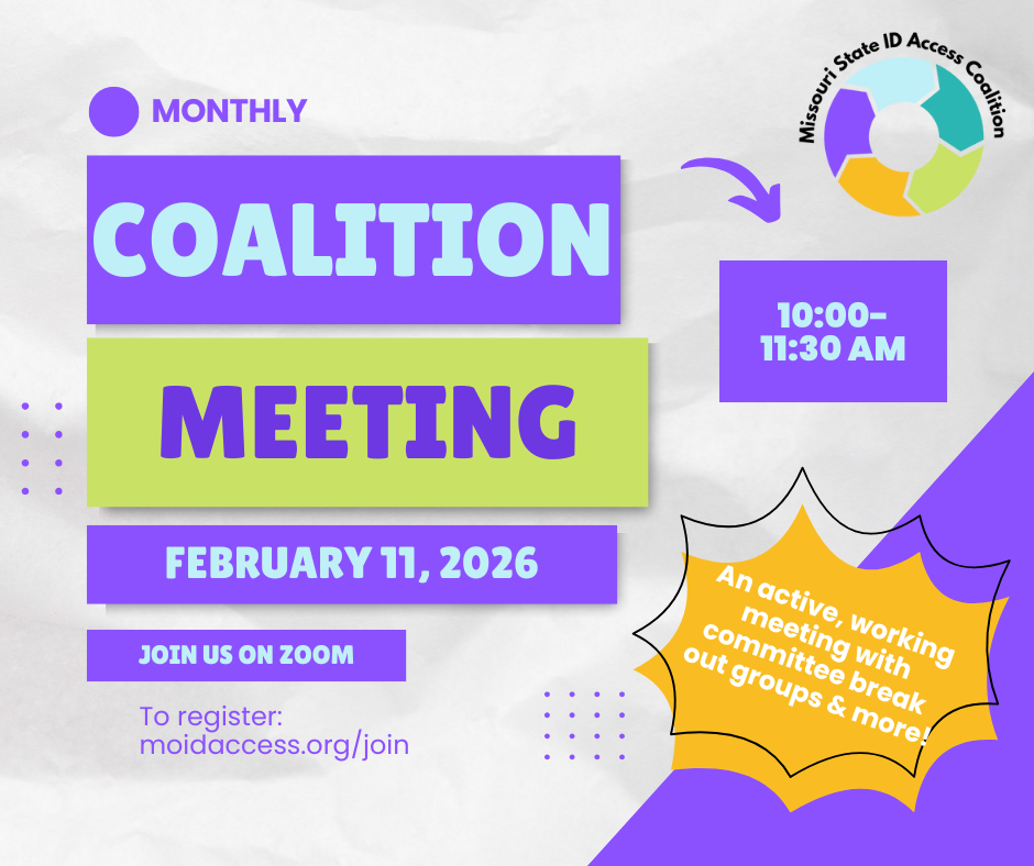 The Missouri State ID Access Coalition recognizes the necessity of a state-issued photo identification card in order to access essential resources and basic services. We are committed to eliminating barriers to official state identification faced by Missouri residents, with a special emphasis on individuals and families experiencing poverty and homelessness. Click here to learn more.